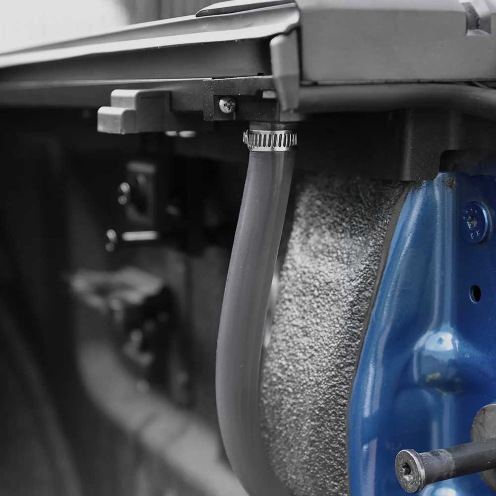 Our truck bed cover is constructed with durable aluminum slats that are powder-coated with textured black finish. This combination of materials provides excellent protection against rain, snow, salt, leaves, and other elements that may cause damage to your truck bed.