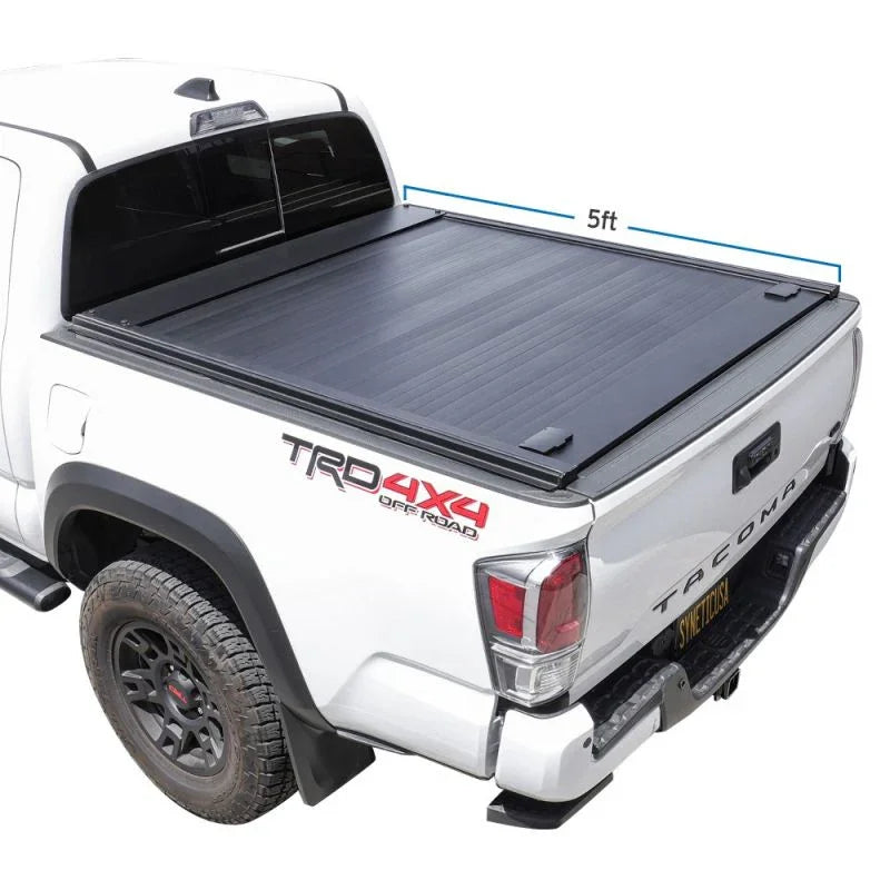 The retractable cover can be stopped at any position and locked at the tailgate, allowing easy access to your cargo and the ability to haul large items without fully removing the cover.