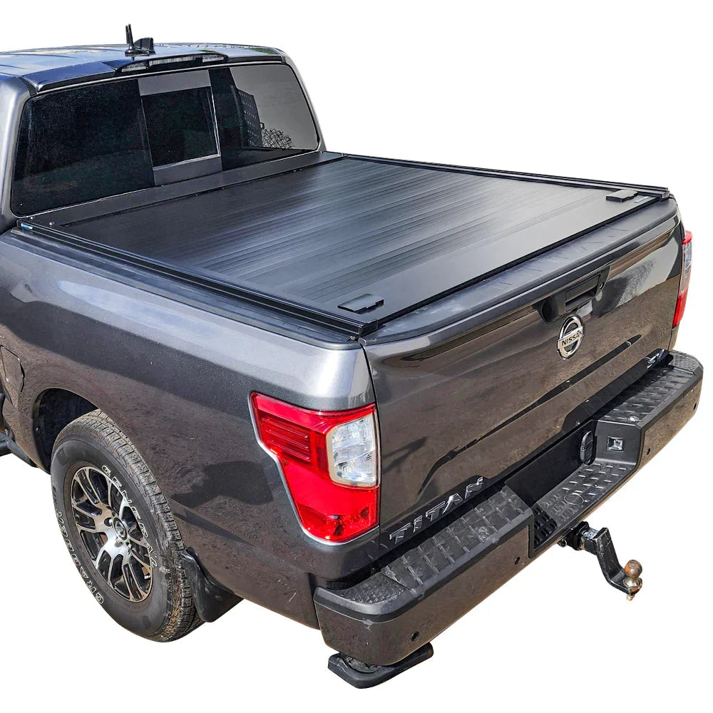 Elevate your truck's functionality and style with our high-quality tonneau cover. Constructed with durable aluminum slats and powder-coated with a weather-resistant matte black finish, it protects your cargo against harsh weather, dust, and other elements while providing a sleek, streamlined look to your truck bed.